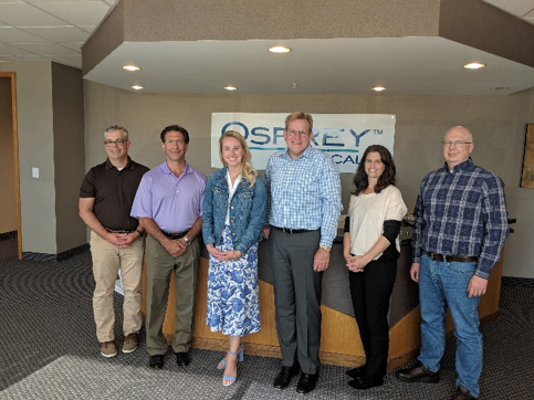 At Pursuit Vascular, Catherine toured the manufacturing facility and learned about how their product can significantly reduce infections from the use of catheters in dialysis, particularly when used in the home. Osprey Medical demonstrated how their technology improves outcomes for patients with at-risk kidney factors, including diabetes and heart failure. We are greatly appreciate Catherine coming to see firsthand about the great work being done to improve kidney health by these two Medical Alley companies!