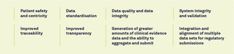- Capturing a wider variety of non-traditional clinical data derived as close to the source as possible, including electronic health records, imaging data, sensor data, and patient-provided data